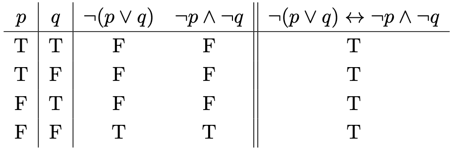 Theorem 1 (de Morgan’s Laws). Let be propositional variables. Then