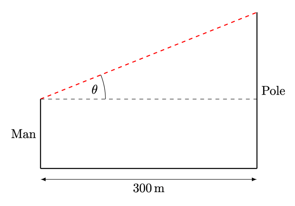 denote the angle of elevation from the man to the top of the pole.