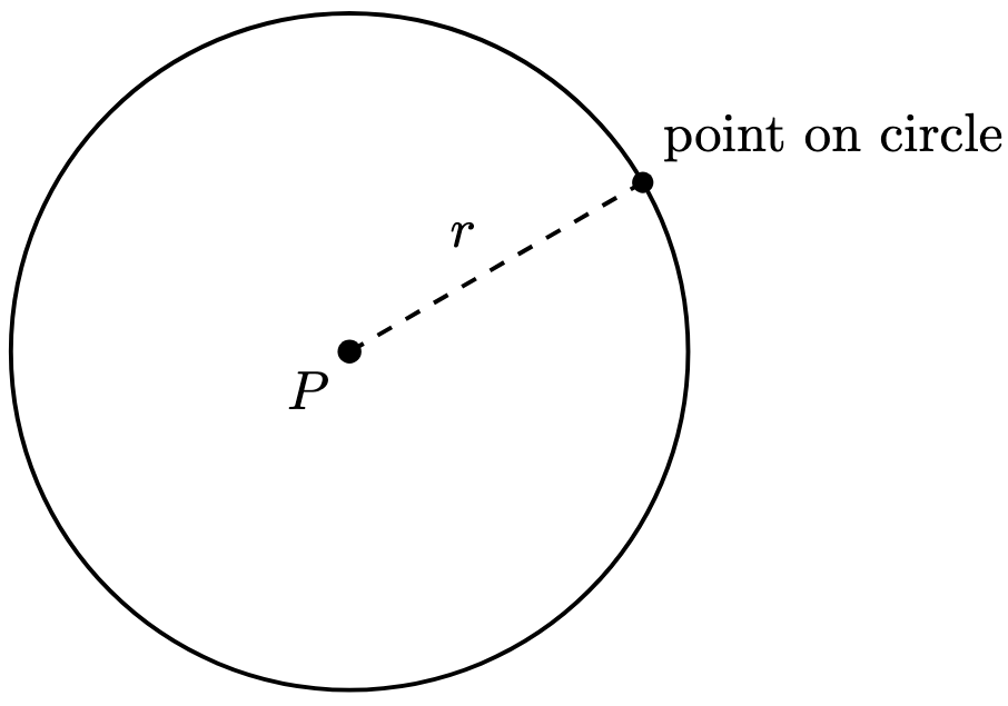 Proof. By definition, a point belongs to the circle if and only if its distance to