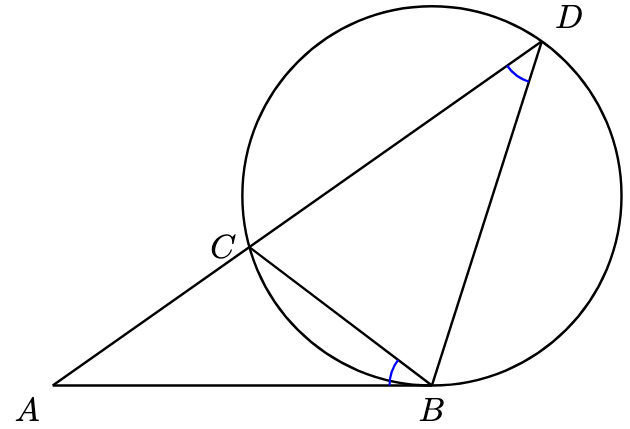 Example 1 (Tangent-Secant Theorem). In the diagram below, (this is called the alternate segment theorem).