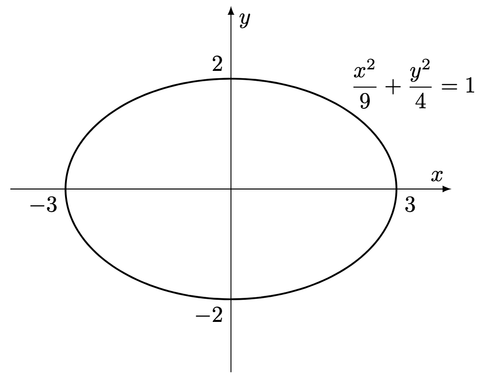Question 1. Evaluate the area enclosed by the ellipse below.