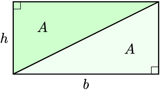 By duplicating the triangle and rotating it, we obtain a rectangle with base and height