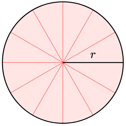 Proof Sketch. We will subdivide the circle into a collection of “curved triangles” or more technically, sectors: