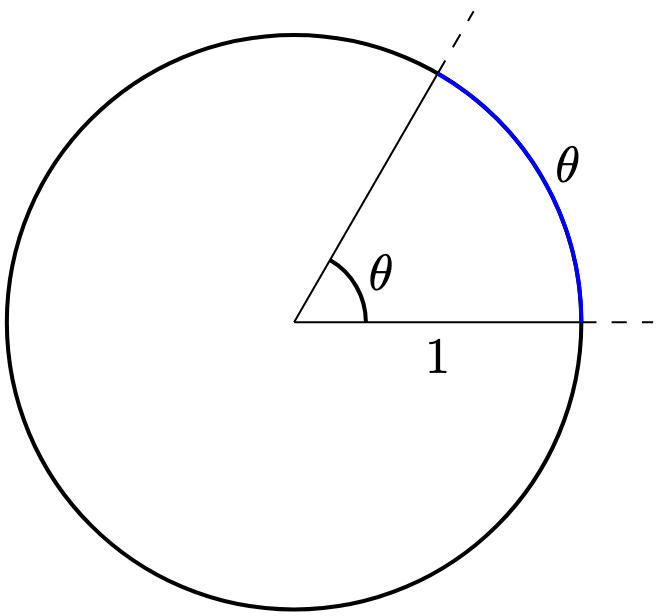 Definition 2. An angle is said to be of radians if the corresponding curved segment (i.e. arc) in the unit circle has a length of