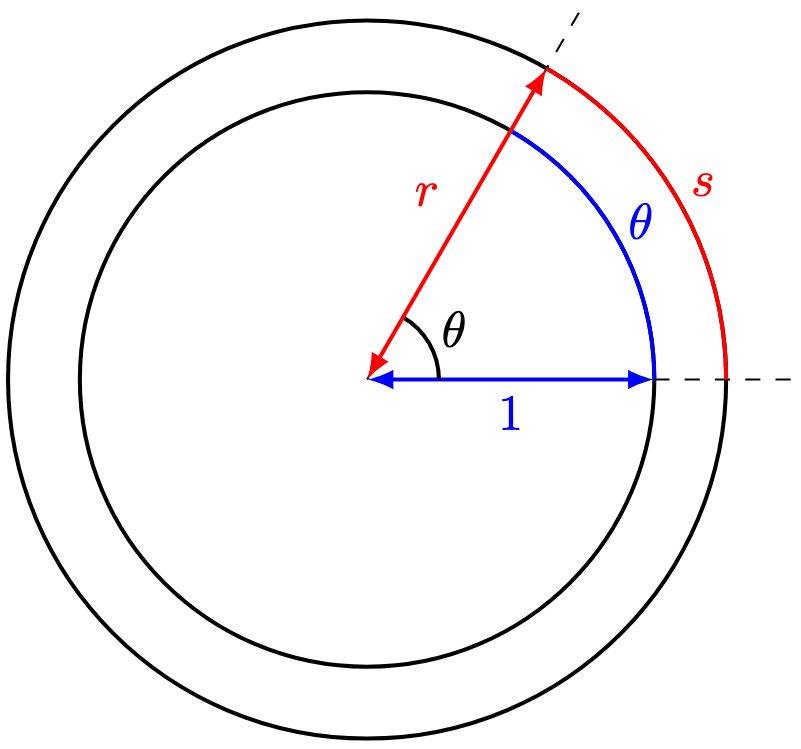 Rather than use the convenience of , we might find it helpful to use the circumference of a circle. If a circle has radius