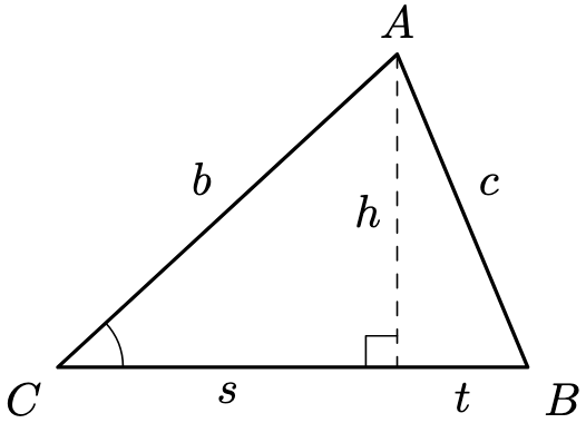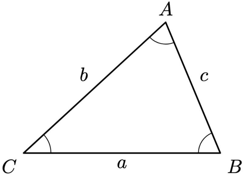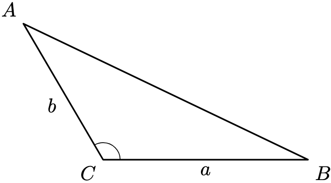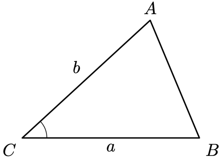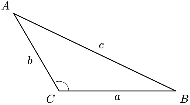 Theorem 4 (Law of Cosines). Given the triangle below,
