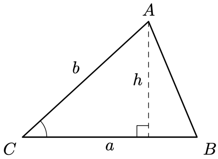 Proof. Since the area formula holds in any type of angle (acute, right, obtuse),