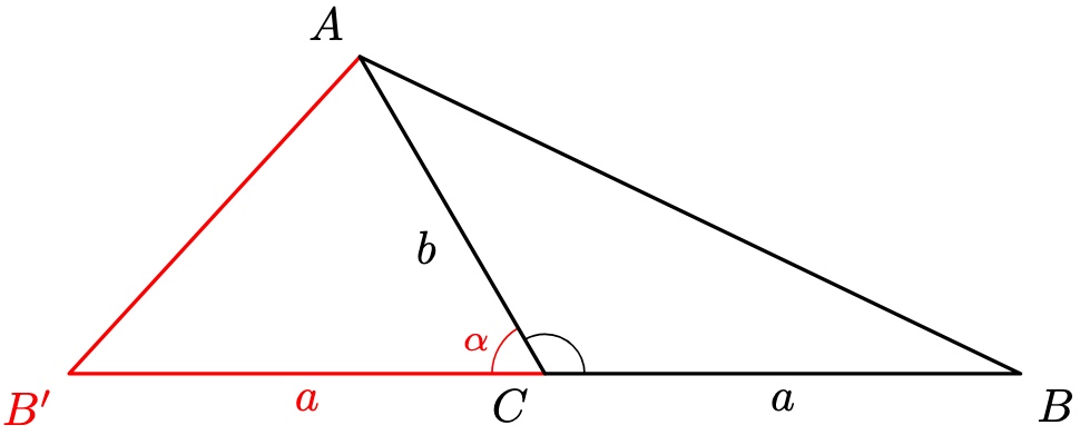 We leave it as an exercise to check that the two right-angled triangles are congruent. Hence, relative to , the triangle has an adjacent side