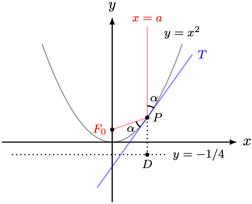 The diagram below shows a parabola with equation . Recall that its directrix has equation