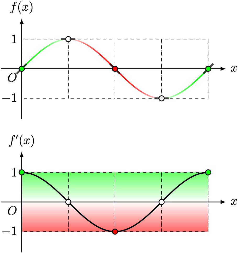 Remark 1. Strictly speaking, we have put the cart before the horse—I couldn’t colour the sine graph unless I already knew that the derivative of is